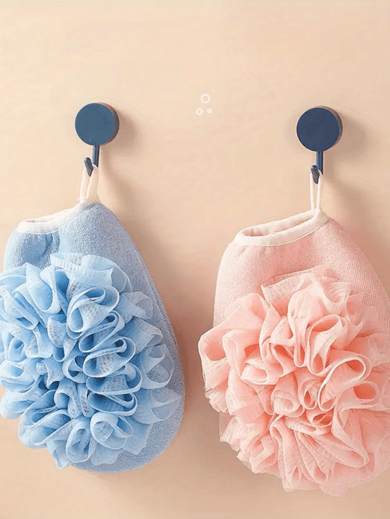 1 件 2 合 1 浴巾和沐浴丝瓜络,双面多功能沐浴手套,柔软网状毛巾,易起泡,亲肤磨砂浴球清洁工具,去除死皮,浴室配件,无香型