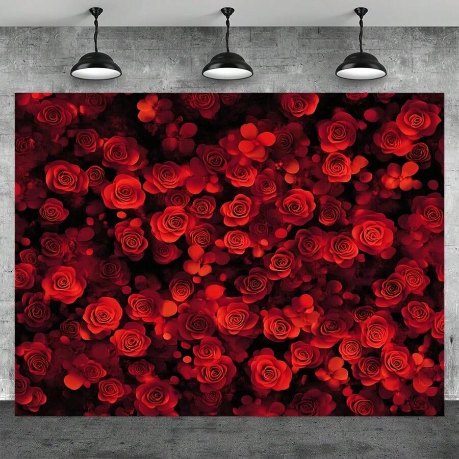 1件装2D平面浪漫红玫瑰情人节背景布,耐用涤纶摄影背景,多用途家居派对装饰,100%涤纶,无需用电,适合一般用途