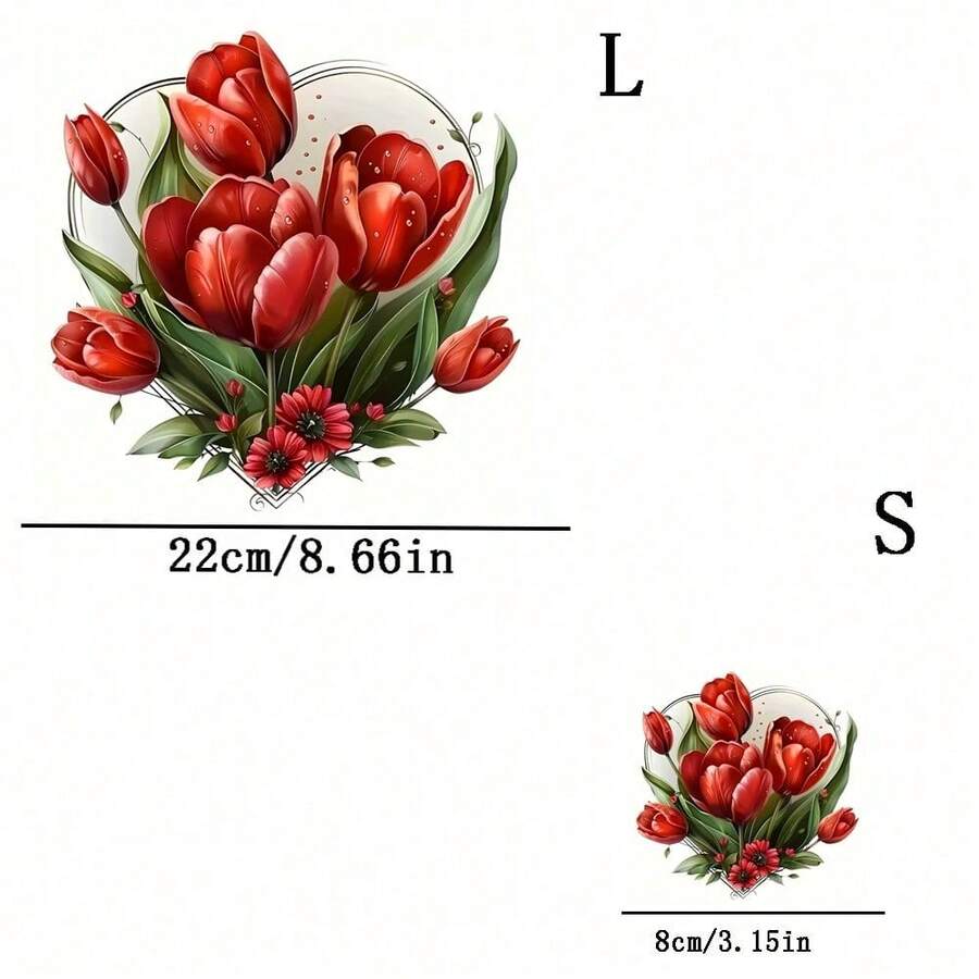 1片/2片/3片装鲜艳红色郁金香热转印贴片,耐用持久的熨烫贴纸,适用于DIY T恤、连帽衫、牛仔裤、卫衣、背包、夹克、手提包、枕头等。