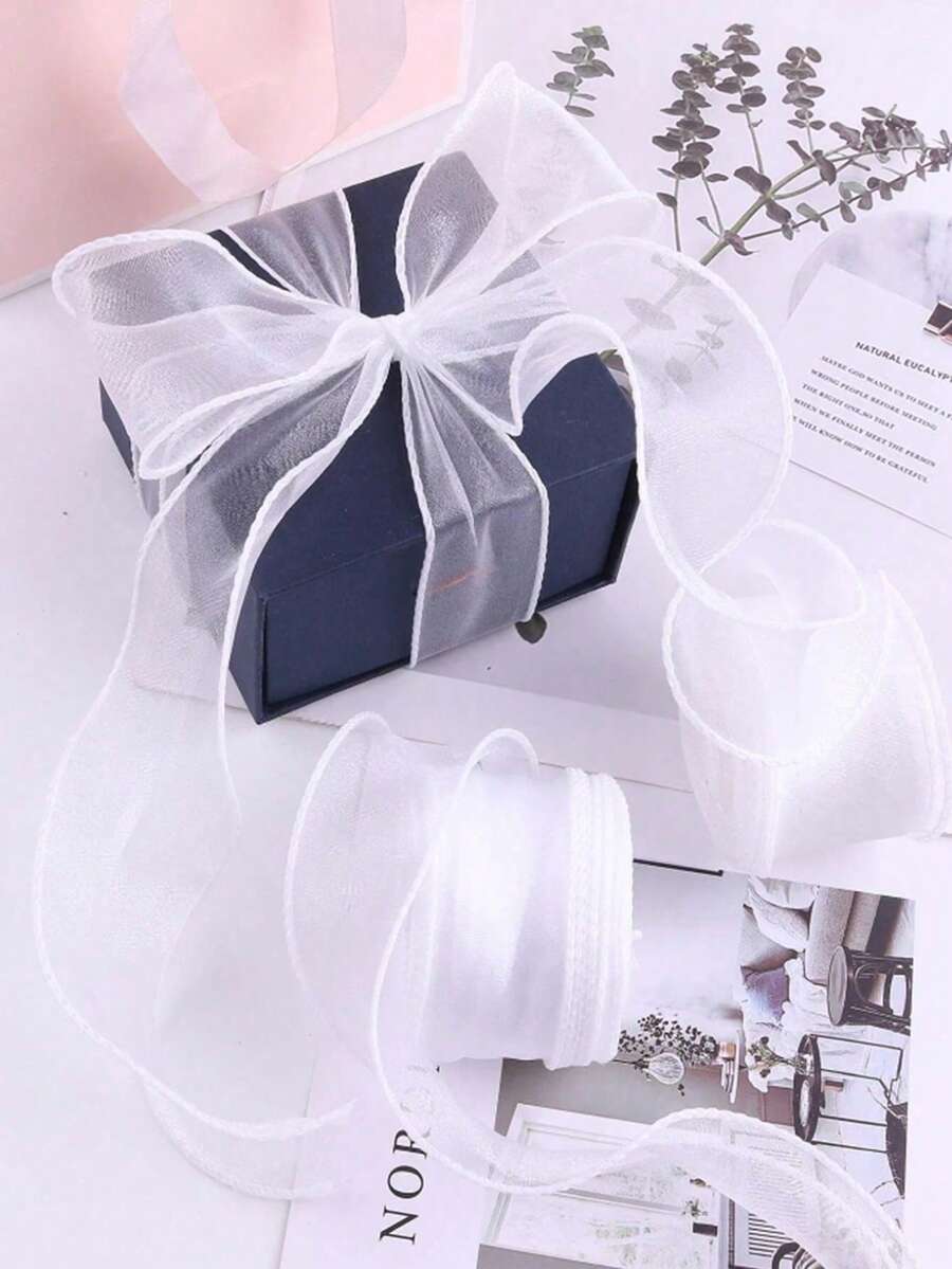 1卷/2卷/4卷/6卷半透明欧根纱丝带卷,适用于花束、礼品包装、蛋糕装饰、婚礼、装饰蝴蝶结、节日派对装饰