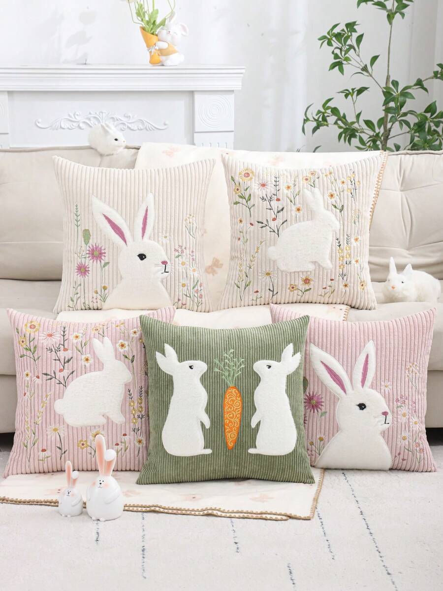 1件/2件装复活节装饰抱枕套,兔子毛绒灯芯绒刺绣,春季客厅沙发卧室家居装饰,节日礼物,绿色