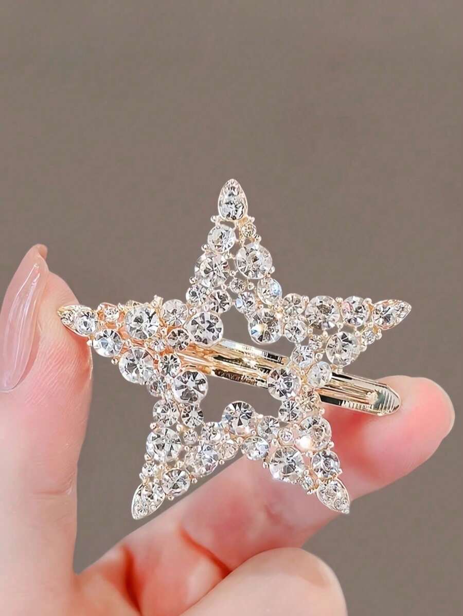 1个/2个优雅闪亮水钻星星装饰发夹,时尚发饰,女士适用,情人节和开斋节礼物,日常必备