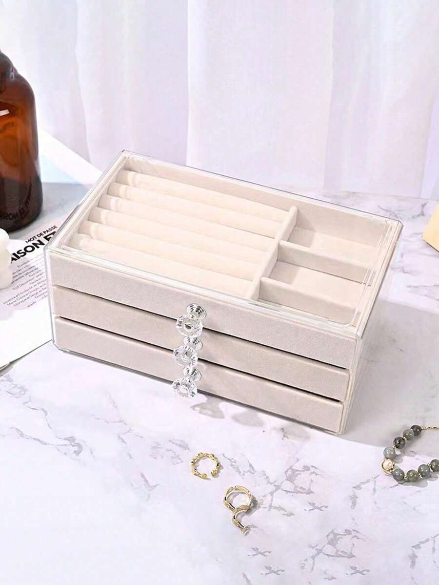 1个三层亚克力透明首饰盒,戒指耳环收纳盒,防尘抗氧化首饰展示盒,天鹅绒托盘首饰盒,首饰柜台展示盒,派对、情人节、母亲节、开学季送给她的绝佳礼物