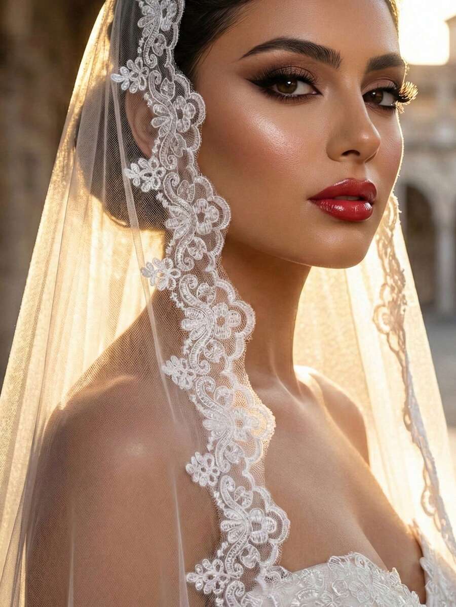 1件3米蕾丝新娘头纱,优雅精致,适合教堂婚礼