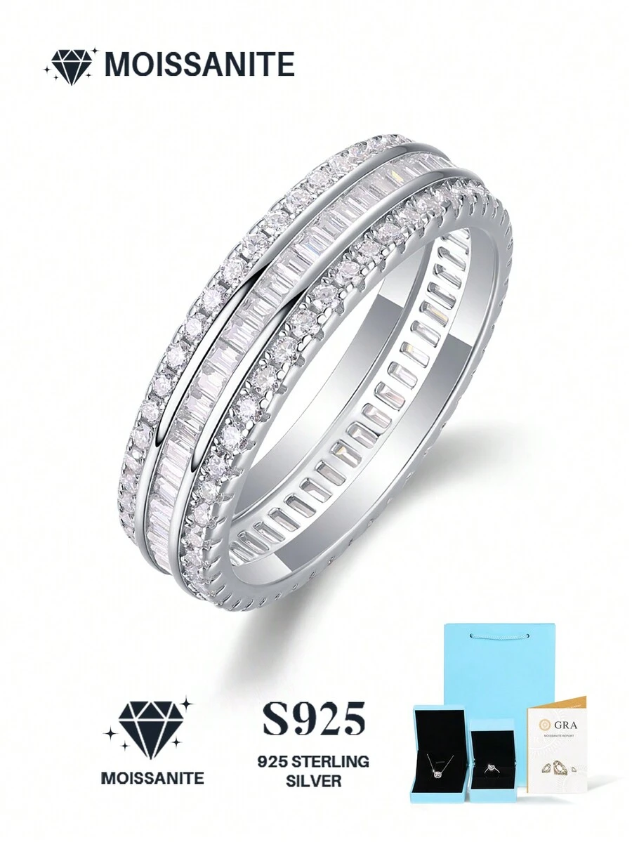 1 件 925 纯银莫桑石订婚和结婚戒指,适合女士,适合派对、正式场合、情人节、订婚、婚礼、周年纪念、生日礼物