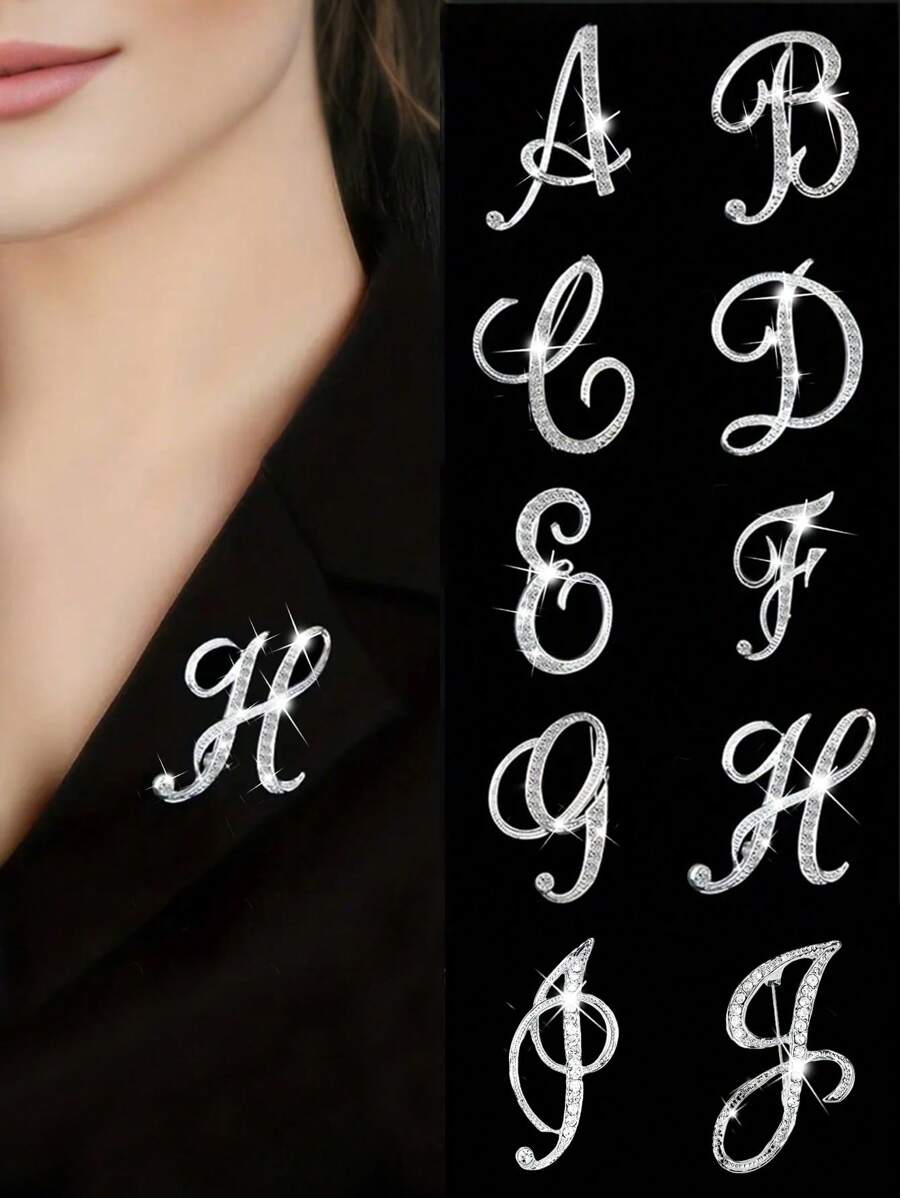 1 件 A-Z 字母水钻胸针 - 欧式风格,合金材质,镶嵌闪亮宝石,时尚别针,适合西装、衬衫、夹克、连衣裙、西装外套和毛衣,适合日常通勤、商务会议、约会和活动办公室配饰珠宝圣诞节万圣节衣服别针有趣可爱的教师礼物