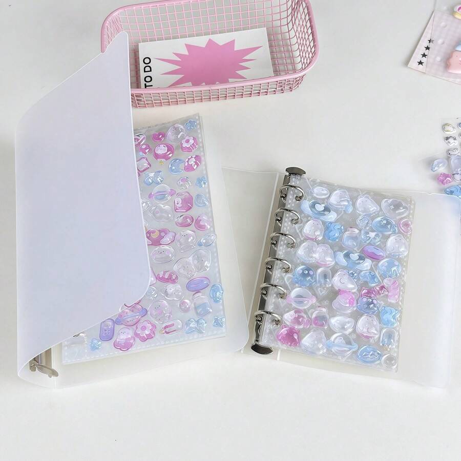 • 1本A6/A7可移除浮雕水晶3D泡泡贴纸相册,贴纸书,内页可撕,兼容3D贴纸,PP材质内页,透明内页替换装,K-Pop照片卡收纳,DIY贴纸笔记本,计划本,剪贴簿,学校及办公用品 - 彩色 - 查看 12
