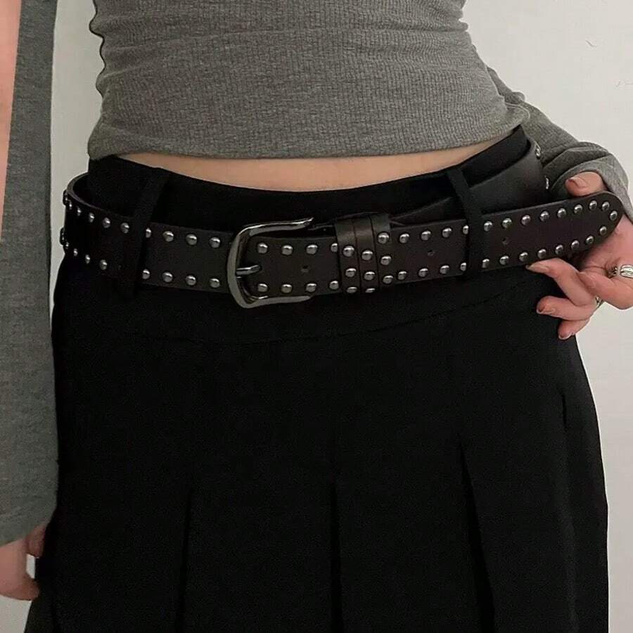 1 件美式时尚休闲铆钉简约百搭女士腰带夏季、学校秋季、秋季、万圣节