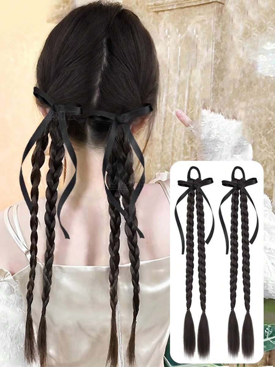 1 件黑色蝴蝶结黑色/棕色浅棕色/编织马尾辫 18 英寸天然黑色拳击编织合成长扭纹辫子马尾辫接发带橡皮筋接发适合女性日常使用