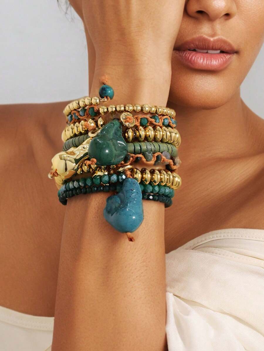 1件波西米亚风奢华复古多色手工编织多层叠戴设计女士手链