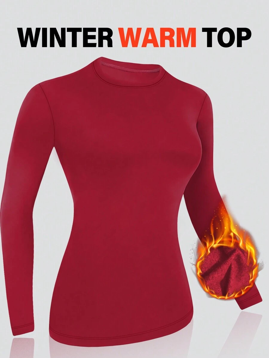 1件酒红色修身长袖保暖高领上衣,秋冬季