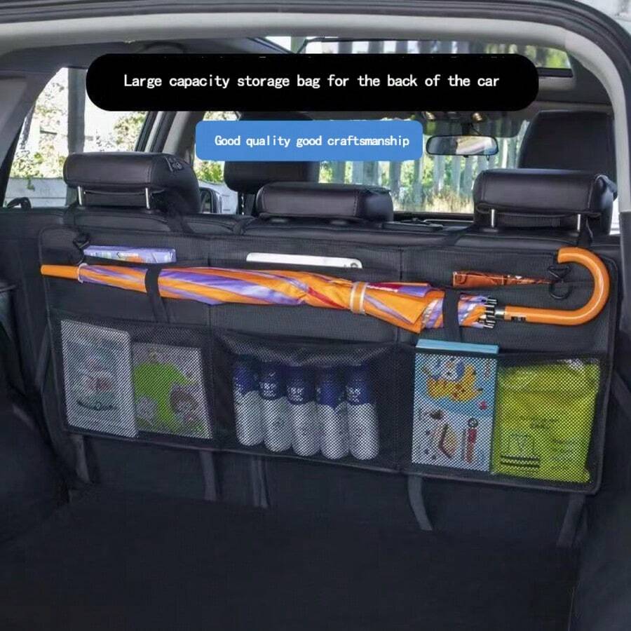 1 件汽车后备箱储物网袋,适用于 SUV、MPV、后座的收纳隔层支架,可放置雨伞、球拍