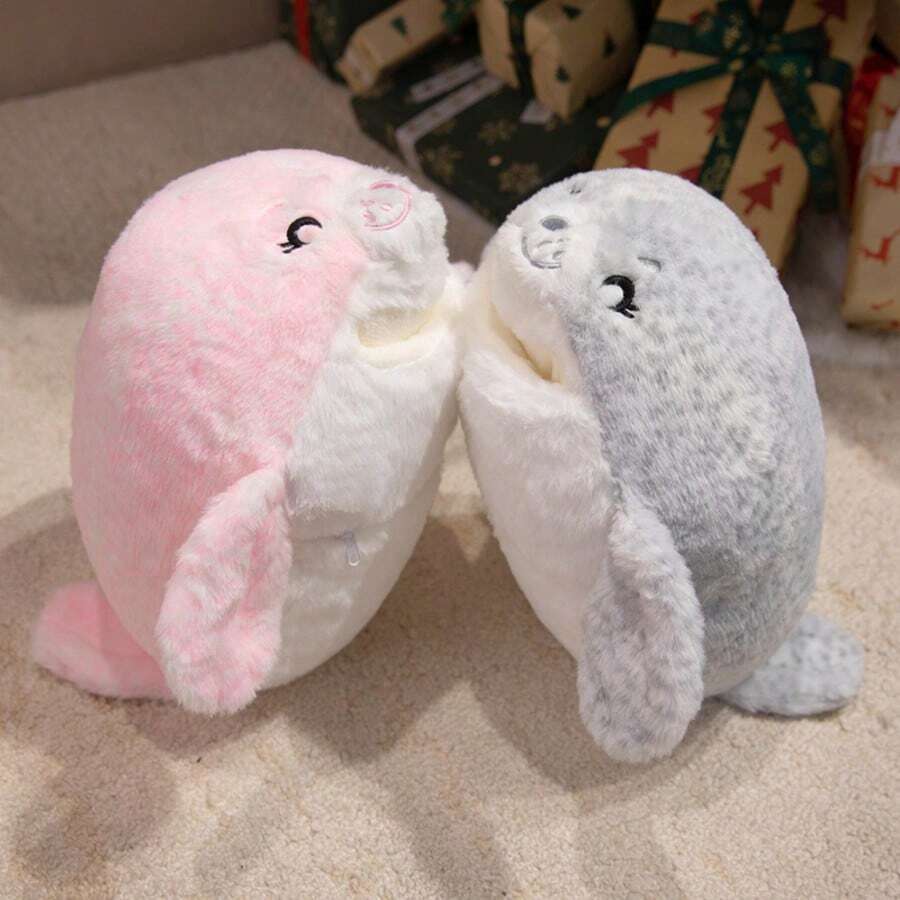 1个可爱海豹毛绒保暖手枕,柔软填充玩偶,卡通海豹保暖手枕,靠垫,午睡枕,适用于卧室、沙发、装饰、生日、感恩节、复活节礼物