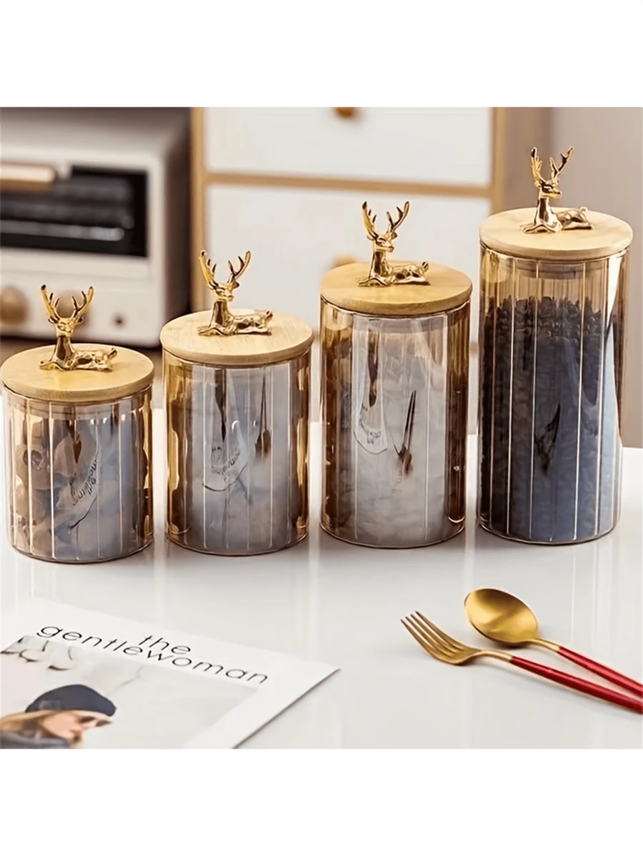 1 件鹿头手柄食品罐、咖啡玻璃储物罐、琥珀色密封茶罐、食品奶粉糖容器、厨房储物罐、家居装饰、谷物、杂货和咖啡豆、厨房用品