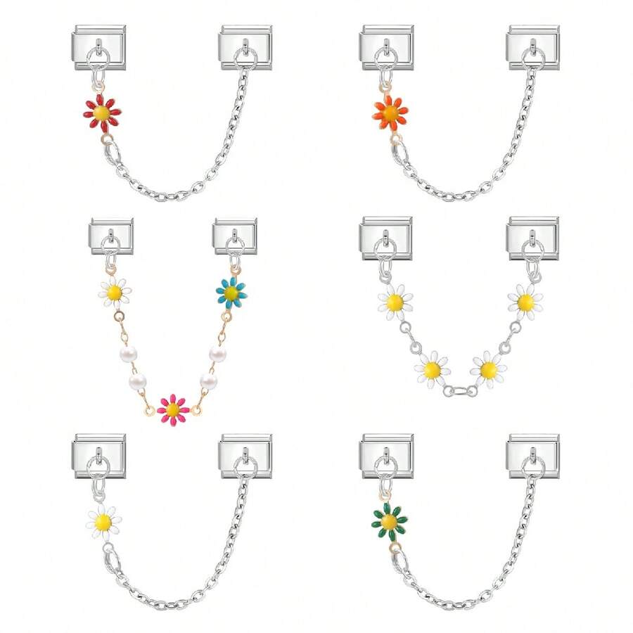 1条双股DIY模块化手链,饰以花朵、蝴蝶、爱心、贝壳元素,适合作为派对礼物送给朋友/情侣,适用于圣诞节、新年、万圣节、情人节等节日,设计精美,不锈钢材质。