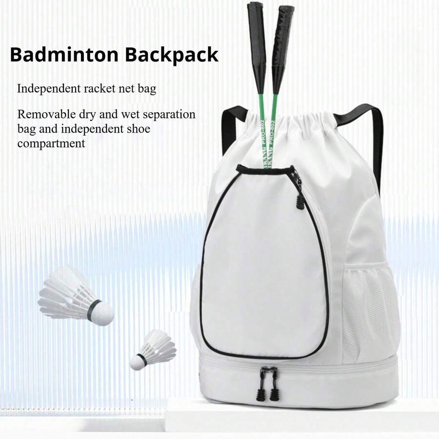 1 件带羽毛球网球拍口袋的抽绳背包,大容量便携式球拍携带包,用于匹克球,干湿分离游泳瑜伽健身包,带鞋隔层,耐磨多口袋运动包,防水行李袋,返校多功能手提包,适用于女性和男性户外足球篮球旅行徒步旅行骑自行车健身单肩包