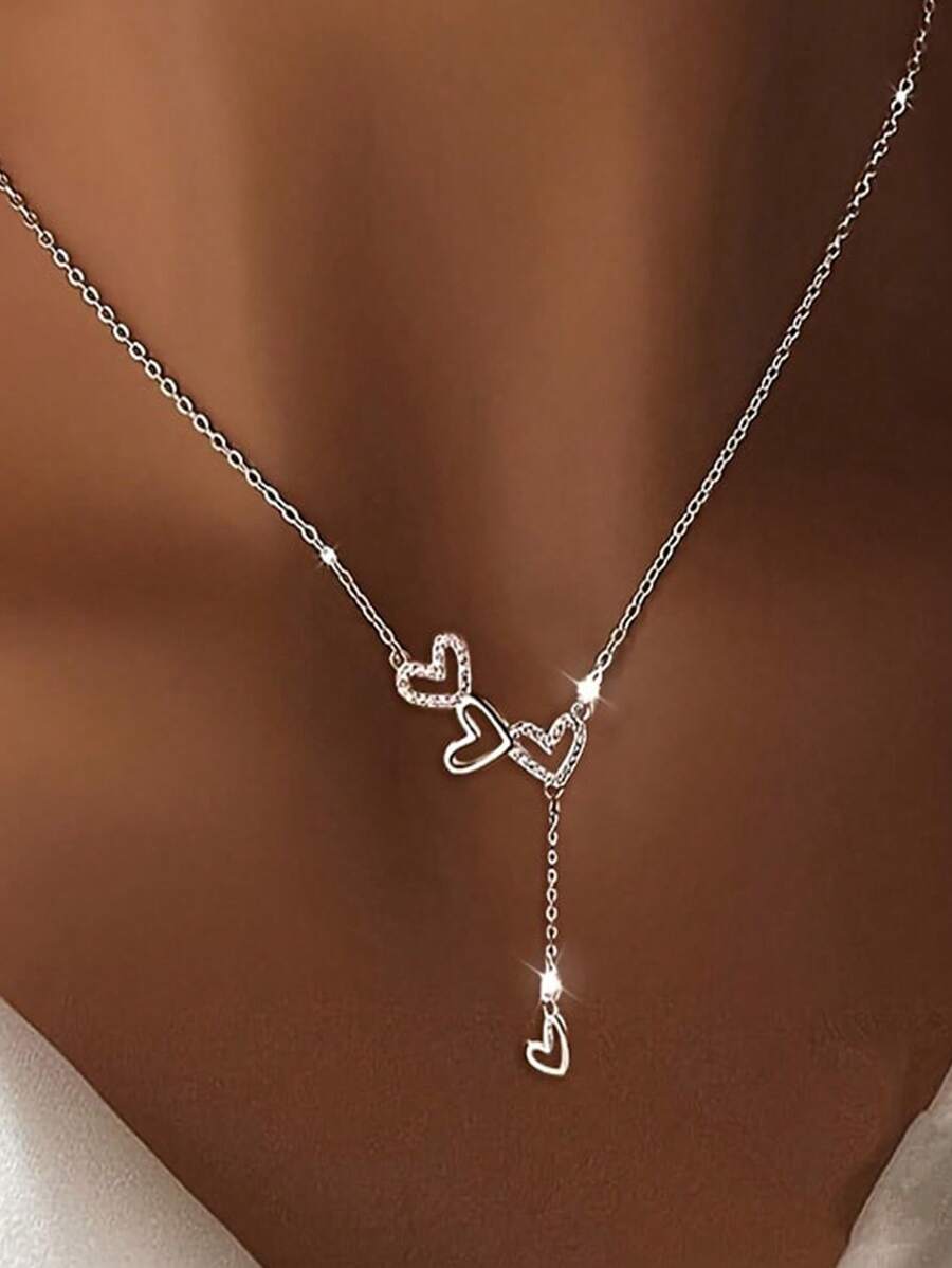 1 件优雅简约水钻三心流苏吊坠项链,奢华百搭设计,适合女性、新娘、订婚珠宝、女朋友或情人节礼物,情人节、妈妈、母亲、母亲节、礼物