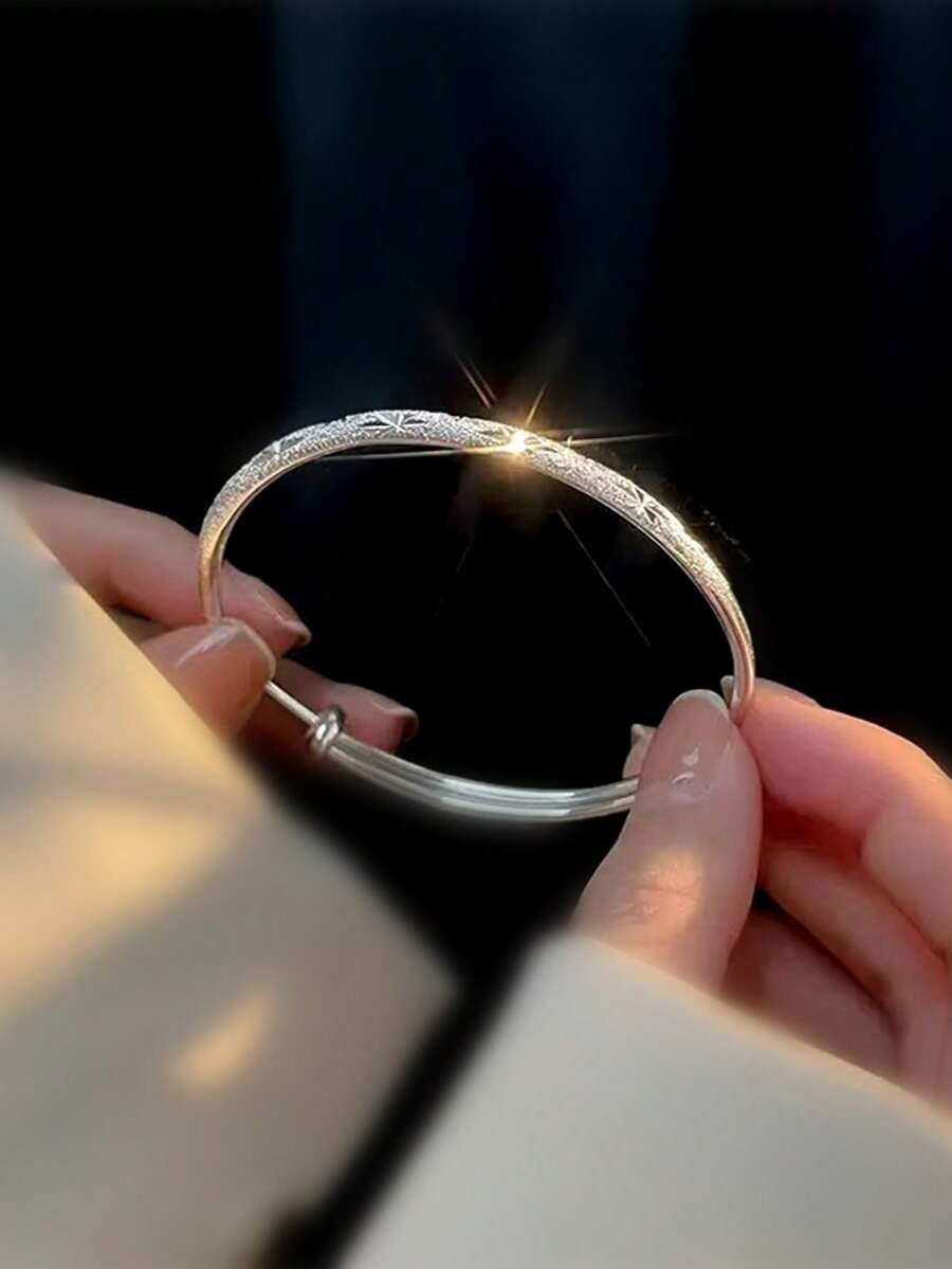1 件优雅女士 925 纯银闪亮星星可调节手链,奢华简约金属首饰,送给朋友的礼物