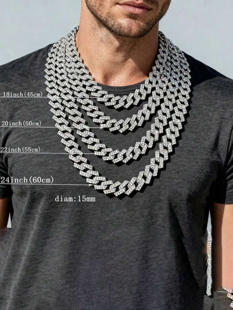 1 件欧美嘻哈时尚 14 毫米水钻菱形链手链/项链男士配饰,霸气十足