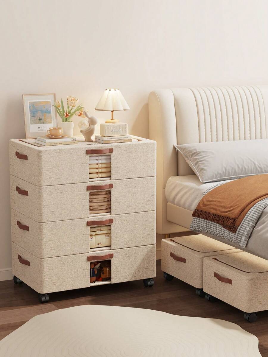 1个带轮布艺收纳箱,可折叠便携式衣物收纳箱,可拆卸轮子,双提手,钢架支撑,适用于衣柜、房间、宿舍、床上用品、卧室收纳,情人节礼物及装饰品