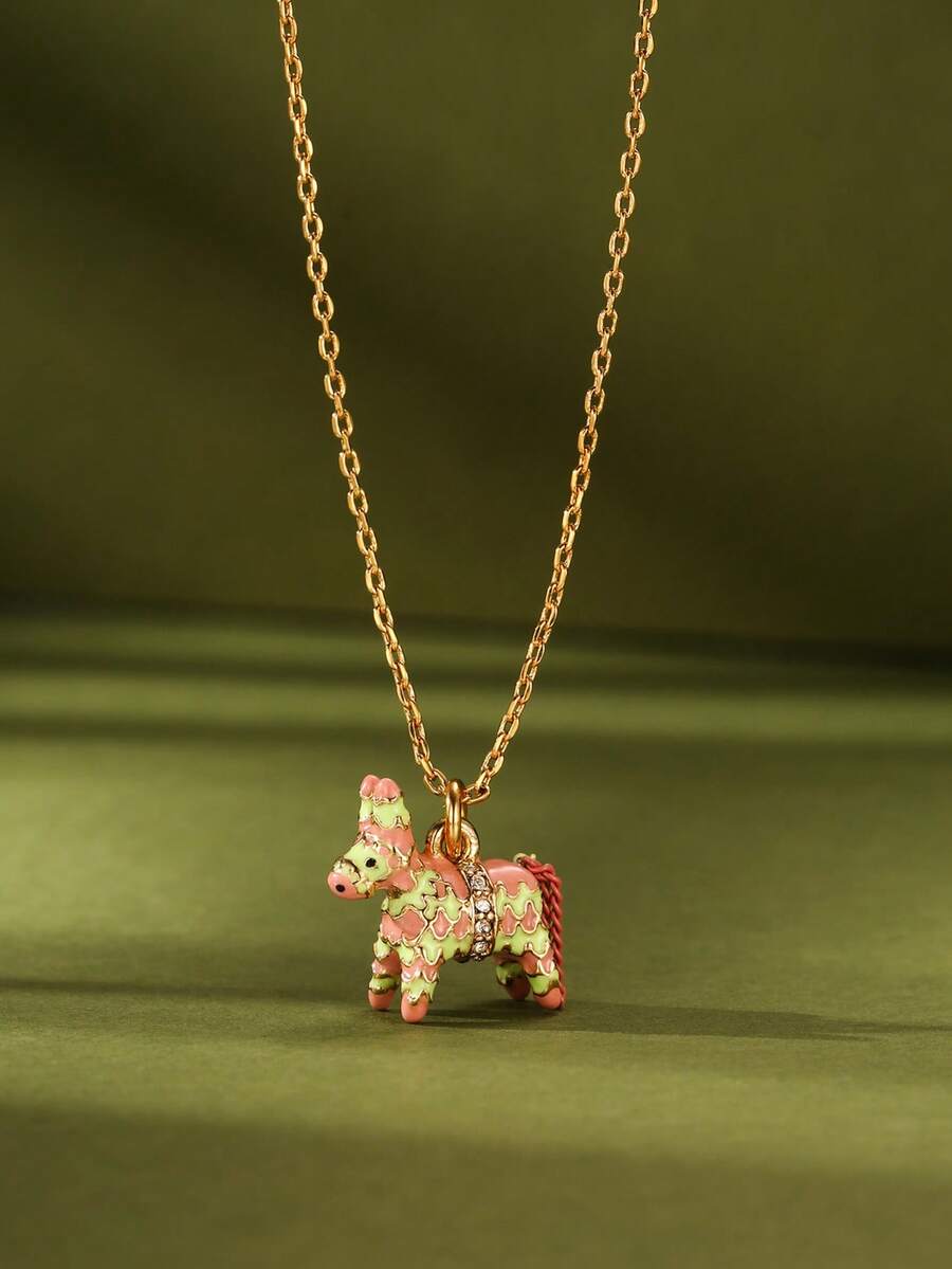 1 件时尚可爱珐琅马吊坠项链,甜美优雅的女士派对珠宝,送给女朋友的独特礼物
