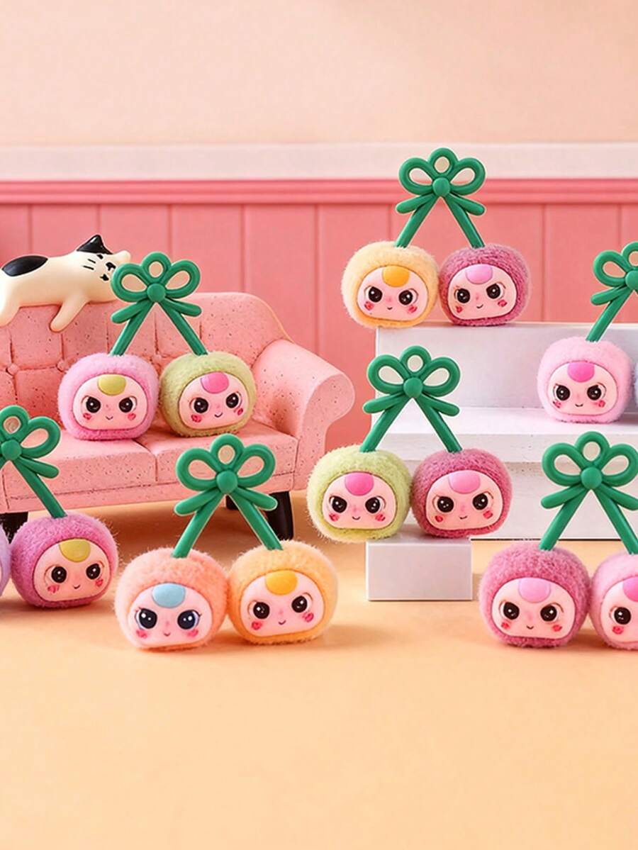 1个植绒双樱桃树脂DIY手工可爱创意饰品钥匙扣吊坠,水果幸运系列,生日、情人节、圣诞节、节日礼物,表面材质ABS(硬质),无植绒