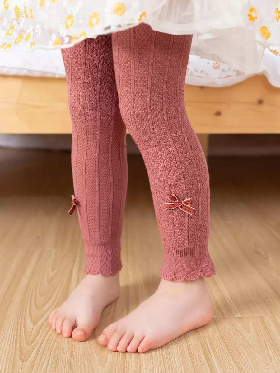 1 件女童蝴蝶结打底裤,透气黑白儿童紧身裤,适合日常休闲穿着