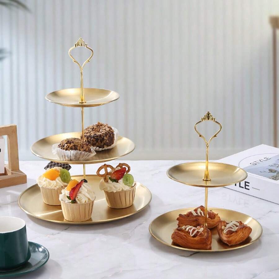 1件金色不锈钢双层蛋糕架/不锈钢蛋糕架/展示塔/甜点盘/展示架/蛋糕架/圣诞节/婚礼/多层甜点架/开斋节/情人节/复活节(美国节日)/首饰托盘