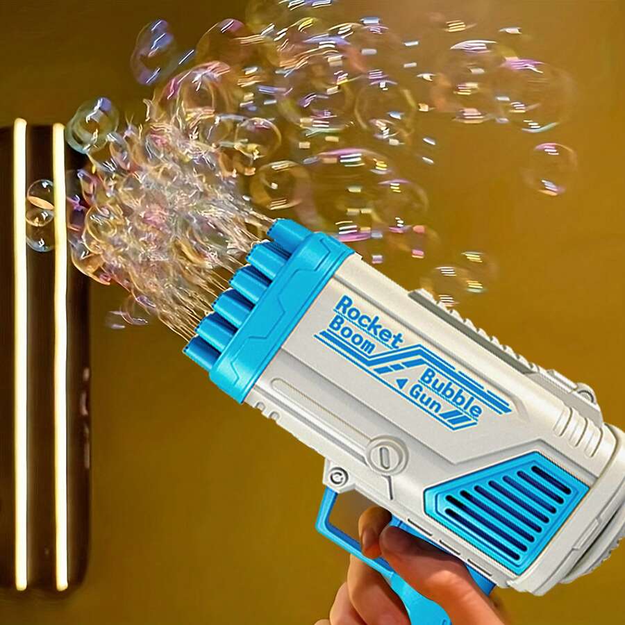 1入手持式32孔電動泡泡槍,led燈和內置風扇,可攜帶式泡泡機玩具,適用於兒童聚會,藍色(不包括泡泡液和電池)opp袋包裝