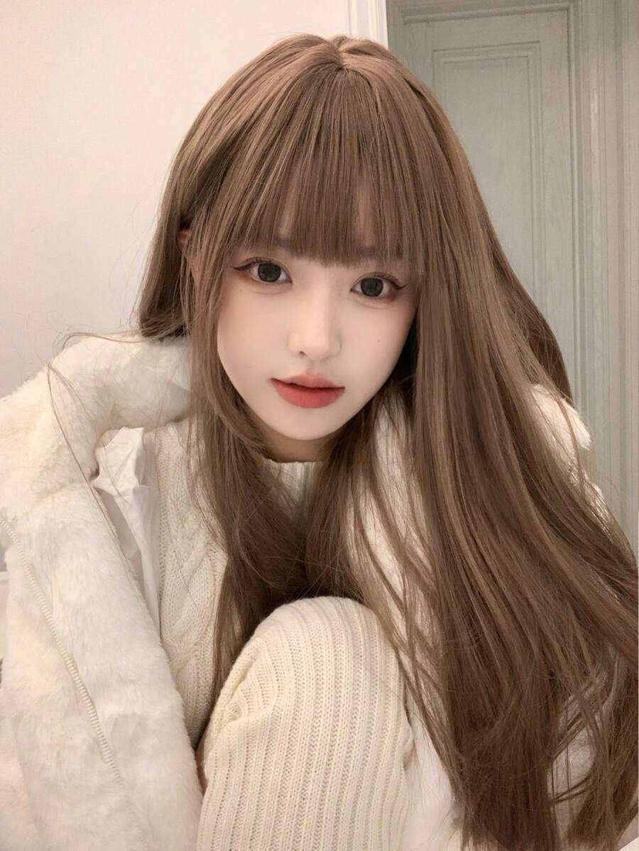 • 1 件蜂蜜茶亞麻長合成假髮,24 英寸,耐熱,纖維材質,適合日常佩戴,外觀自然逼真。