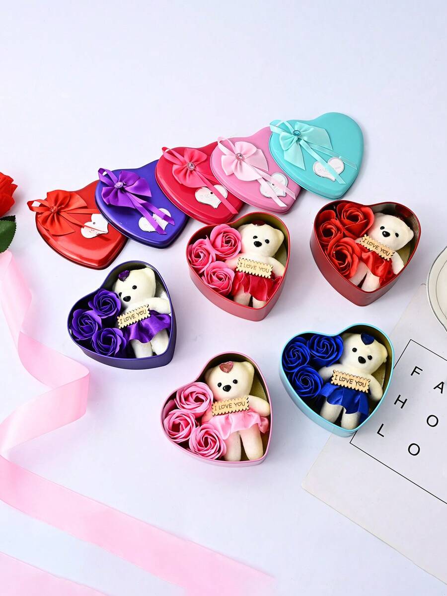1pc铁盒心形泰迪熊香皂花礼盒,礼物永生玫瑰创意礼物,适用于婚礼花艺花束,母亲节永生玫瑰,妇女节,生日,满月,旅游纪念品,情人节,教师节礼物,送给朋友的礼物,老师,广告礼品,促销礼品,会议礼品,福利礼品,节日礼品,颁奖纪念,公关礼品,情人节