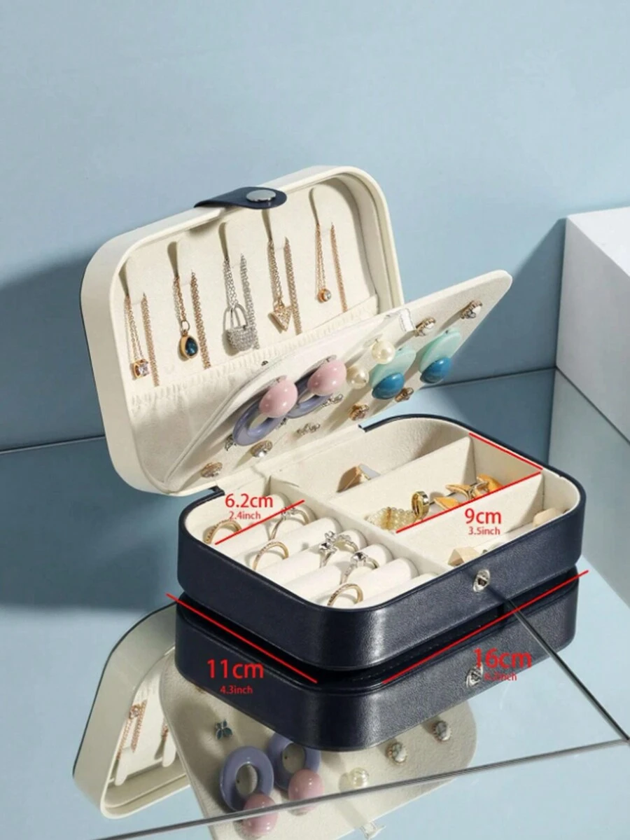 1 件首飾盒皮革首飾收納盒大容量便攜式旅行首飾盒,雙層收納盒適合耳環、項鍊、戒指、口紅、手錶