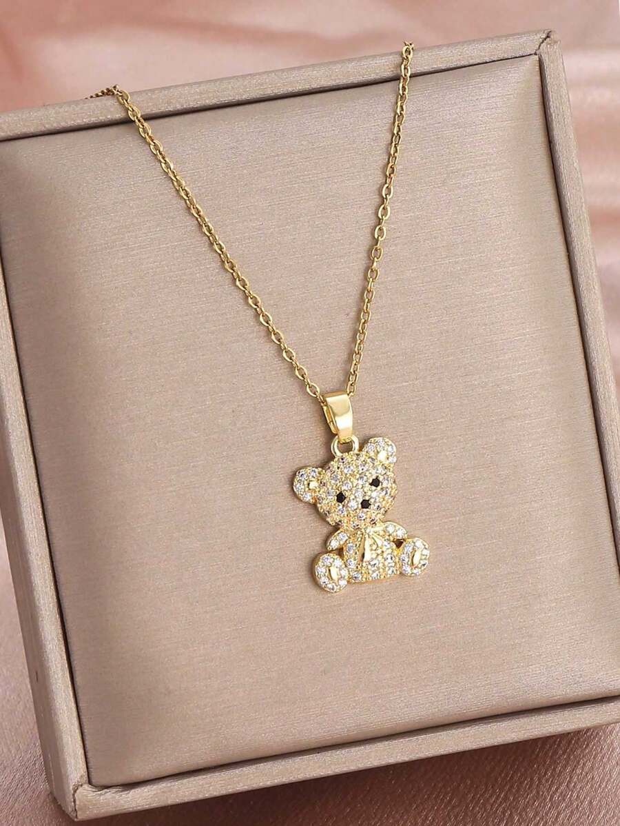 1個可愛迷人的鑽石熊吊墜不銹鋼項鍊,適用於女孩優雅而甜美的假日聚會珠寶禮物,可以日常佩戴裝飾