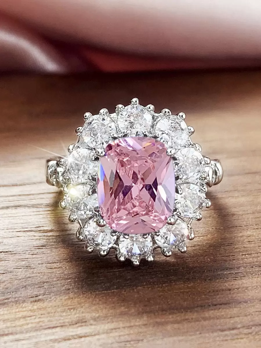 1枚奢华立方氧化锆装饰戒指,女士情人节礼物,周年纪念派对首饰