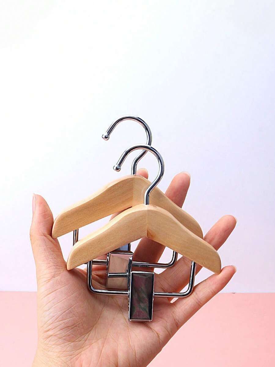 1 件迷你木制衣架,带不锈钢夹 - 宠物服装和配饰衣架,抛光表面,节省空间的设计,适合小物件,浴室收纳架