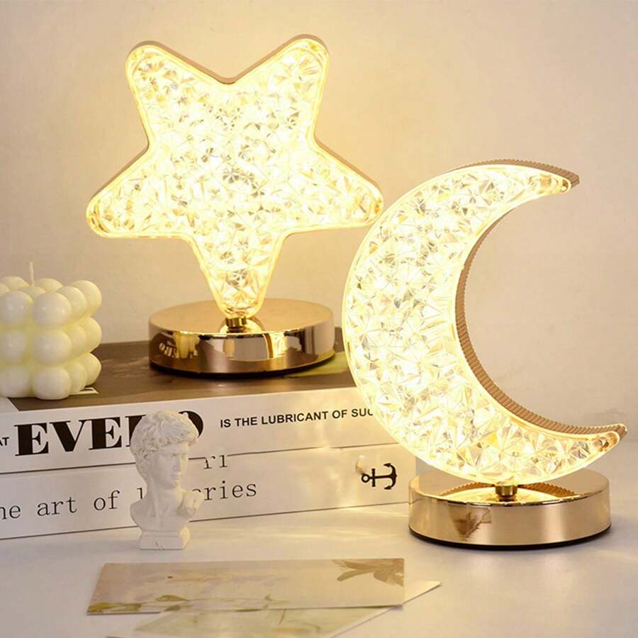 1入現代簡約風格的星月形桌燈裝飾,適用於野營、派對、夜光氛圍等,帶有觸控開關的溫暖白光,適用於臥室、客廳、讀書間、家庭影院,是家人、朋友或伴侶的絕佳禮物