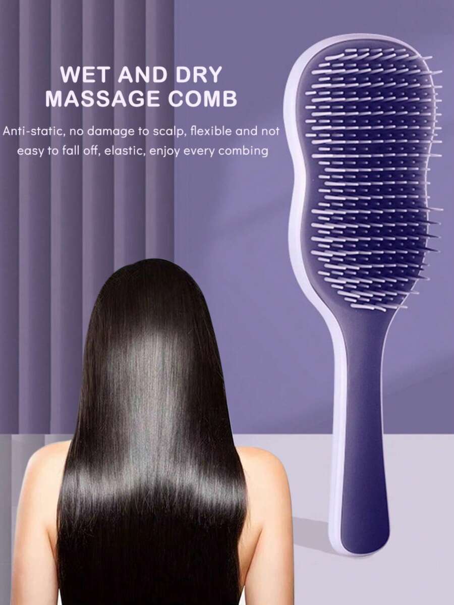 1支天然顺滑发梳,头皮护理按摩梳,带防滑手柄,适用于卷发、直发、干发或湿发