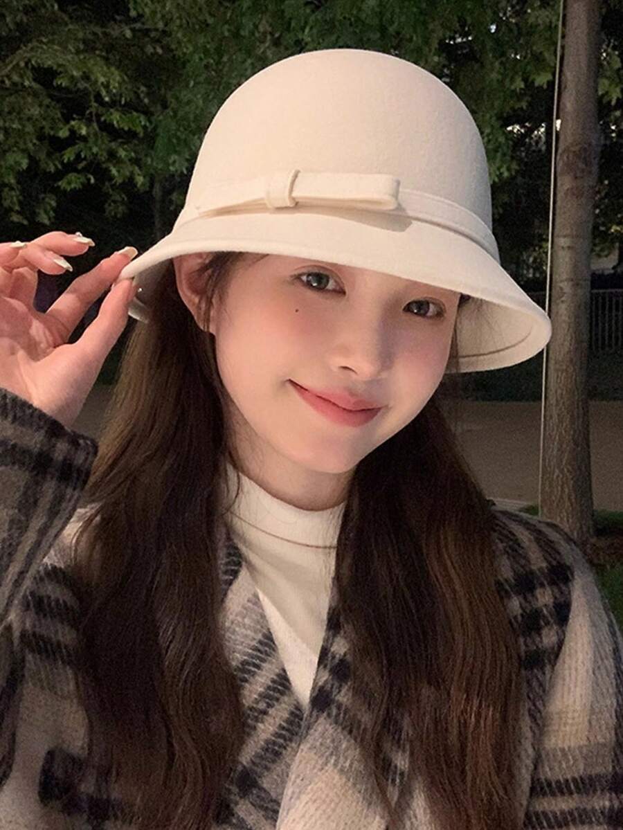 1顶新款秋冬百搭高顶帽,复古蝴蝶结高顶帽,优雅白色天鹅绒渔夫帽,时尚百搭,适合户外活动