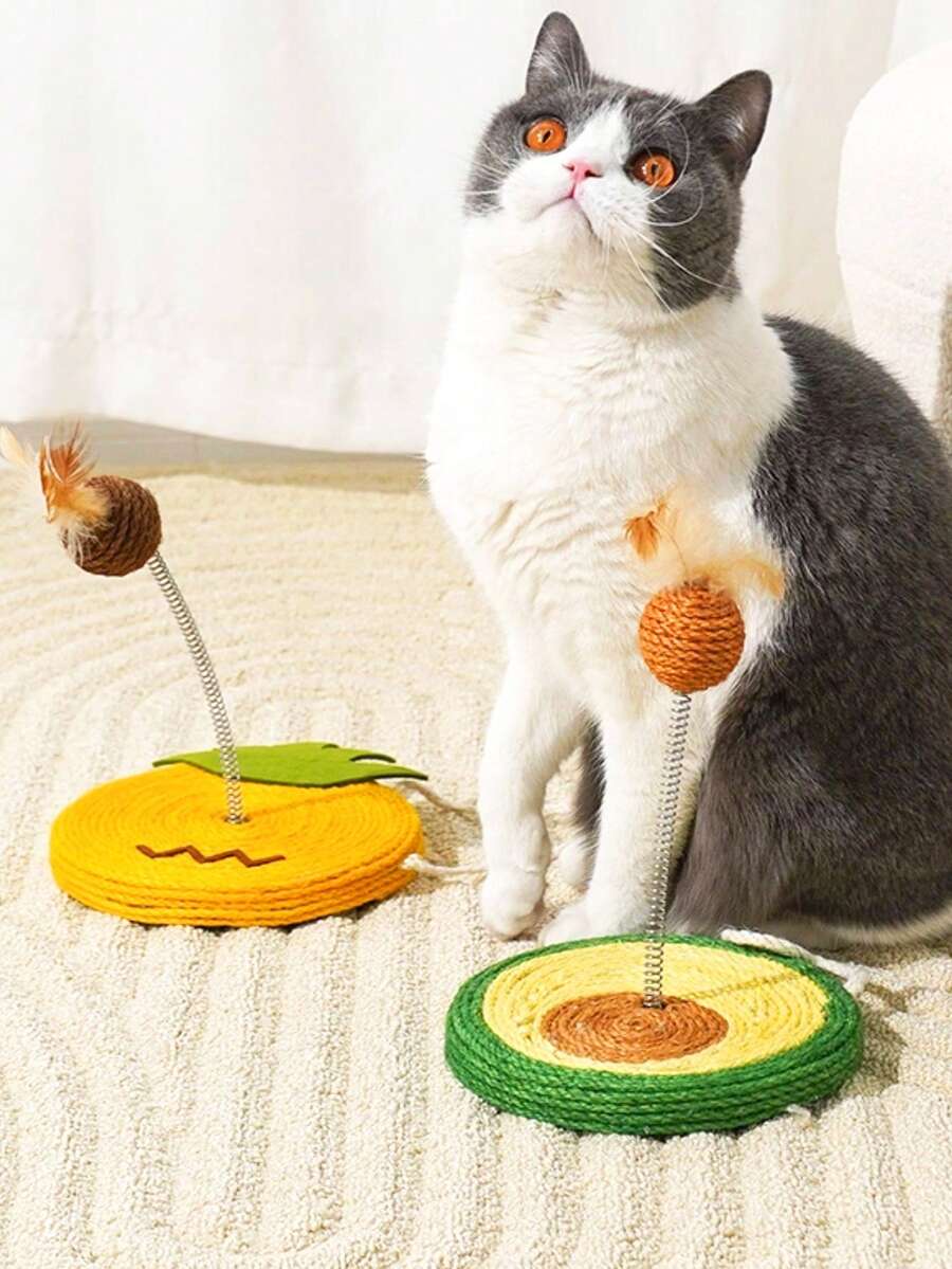 1件装全新益智趣味互动天然材质弹簧摇摆毛绒球羽毛云朵菠萝牛油果剑麻猫抓板摇摆玩具,悬挂式咀嚼清洁宠物玩具,适合所有犬猫,促进亲子互动,缓解焦虑,释放天性,无需电池