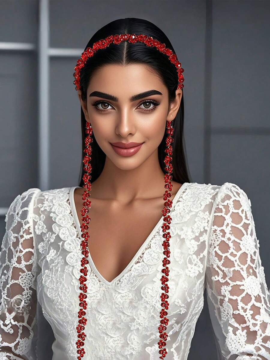 1件红色水晶长流苏发箍,手工多层串珠新娘头饰,适合婚礼、庆典、节日、派对、休闲场合佩戴