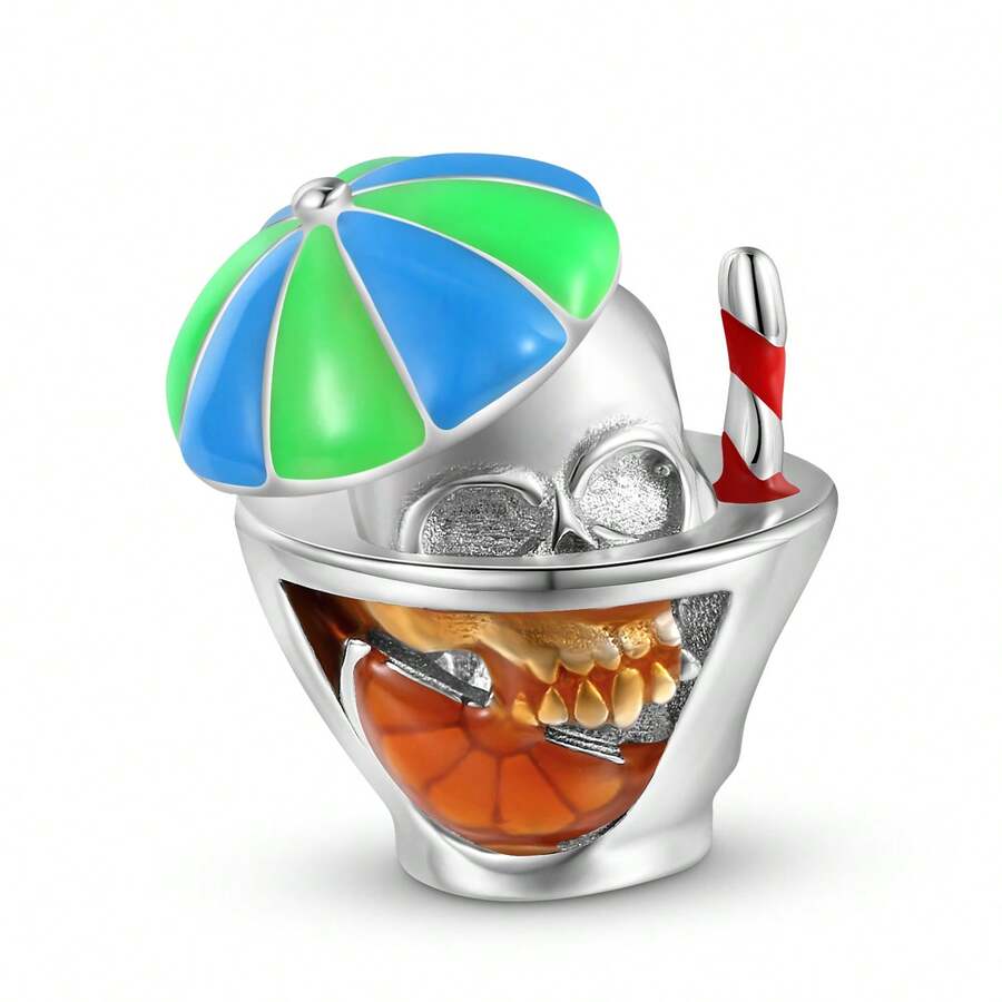 MAGIC CHARMS 1 件 S925 純銀骷髏果汁飲料吊飾 Diy 配件適合女士手鍊和項鍊,精美的節日珠寶禮物