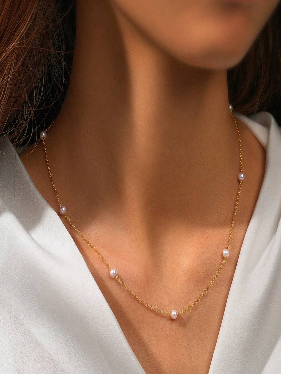 1條貝殼仿珍珠鏈,八角星s925純銀項鍊女士夏季裝飾精美項鍊18k鍍金,適合婚禮