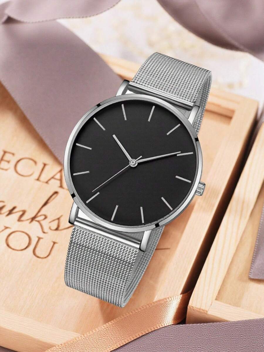 1块银黑色石英商务腕表 - 时尚款式,男士理想礼物(仅手表)