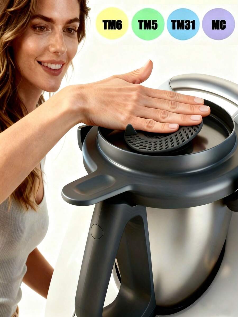 1个防溅盖,适用于Thermomix和Monsieur Cuisine,可防止在搅拌、烹饪或煎炸过程中液体、油脂溅出锅外。兼容TM6/TM5/TM31/MCst/McTrend/McConnect、Thermomix配件和Monsieur Cuisine配件。