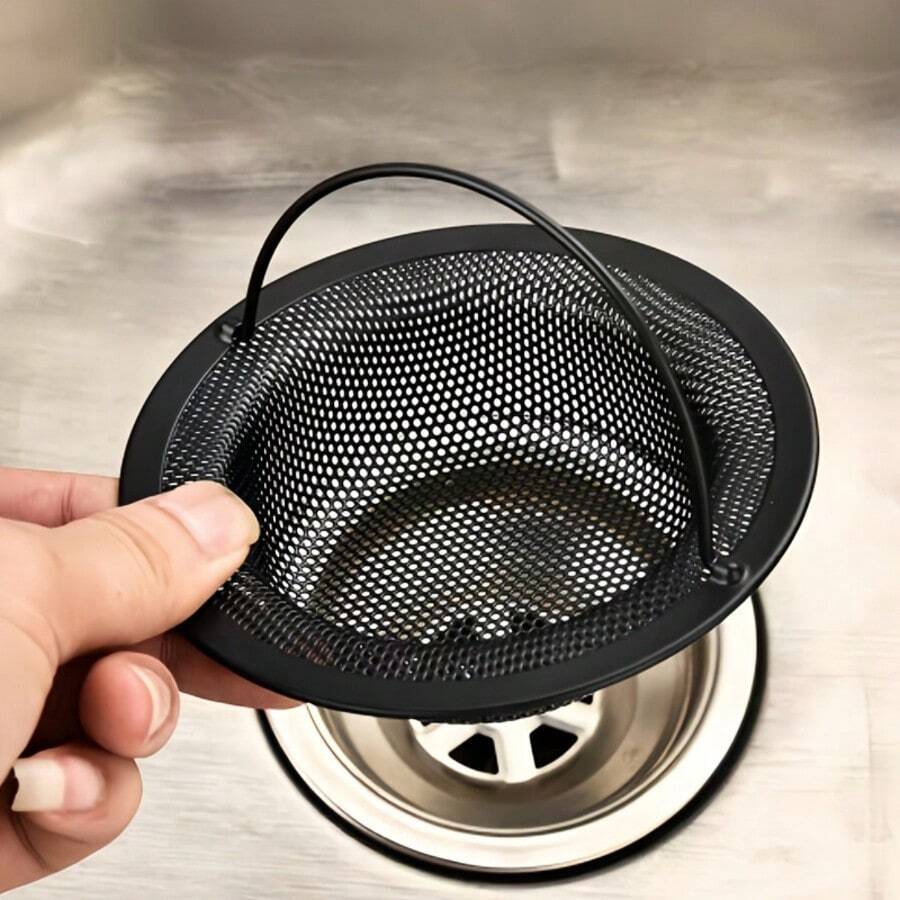 1个不锈钢黑色/银色圆形厨房水槽滤网,带手柄 | 细网沥水篮,易于清洁,适用于洗碗机和水槽,防锈设计,防止堵塞