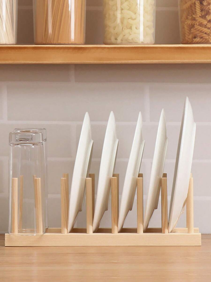 • 1件装时尚实木碗碟架,天然木纹,可收纳碗碟,沥水设计,家用/出租厨房必备 - 彩色 - 查看 14