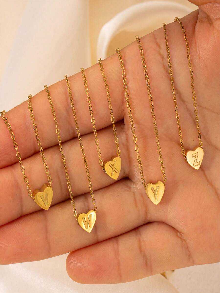1 件时尚不锈钢小巧可爱爱心 26 个英文字母项链吊坠,可作为日常佩戴