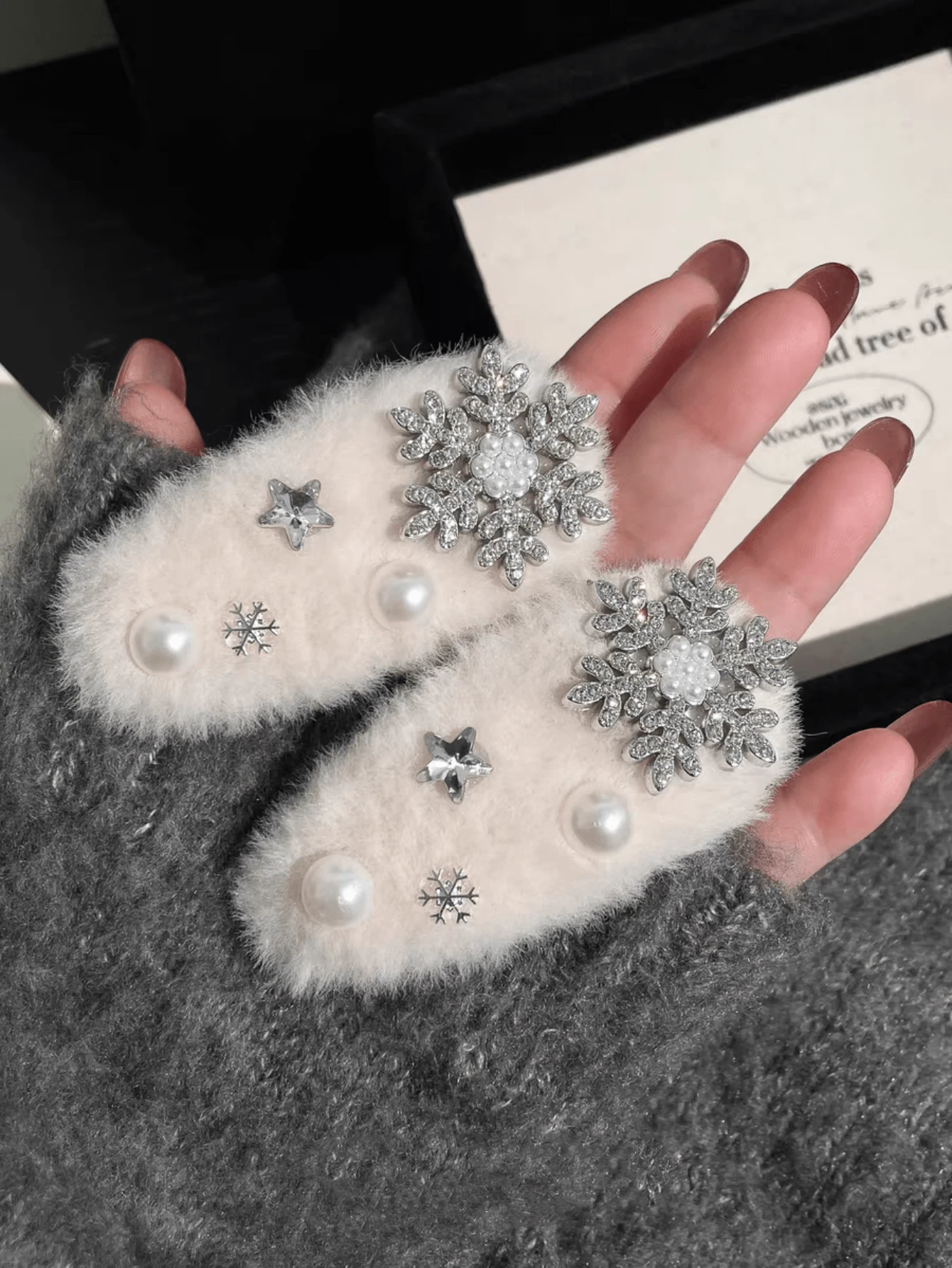 1个超柔软蓬松白色仿毛皮水钻雪花发夹,可爱侧刘海夹,适合下雪天,爪夹,发夹,发卡