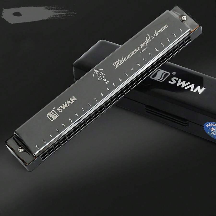 1支天鵝口琴初學者學生專用24孔雙面c調口琴隨機顏色