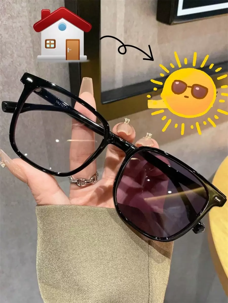 1副男女通用大框镶钻防蓝光户外变色眼镜